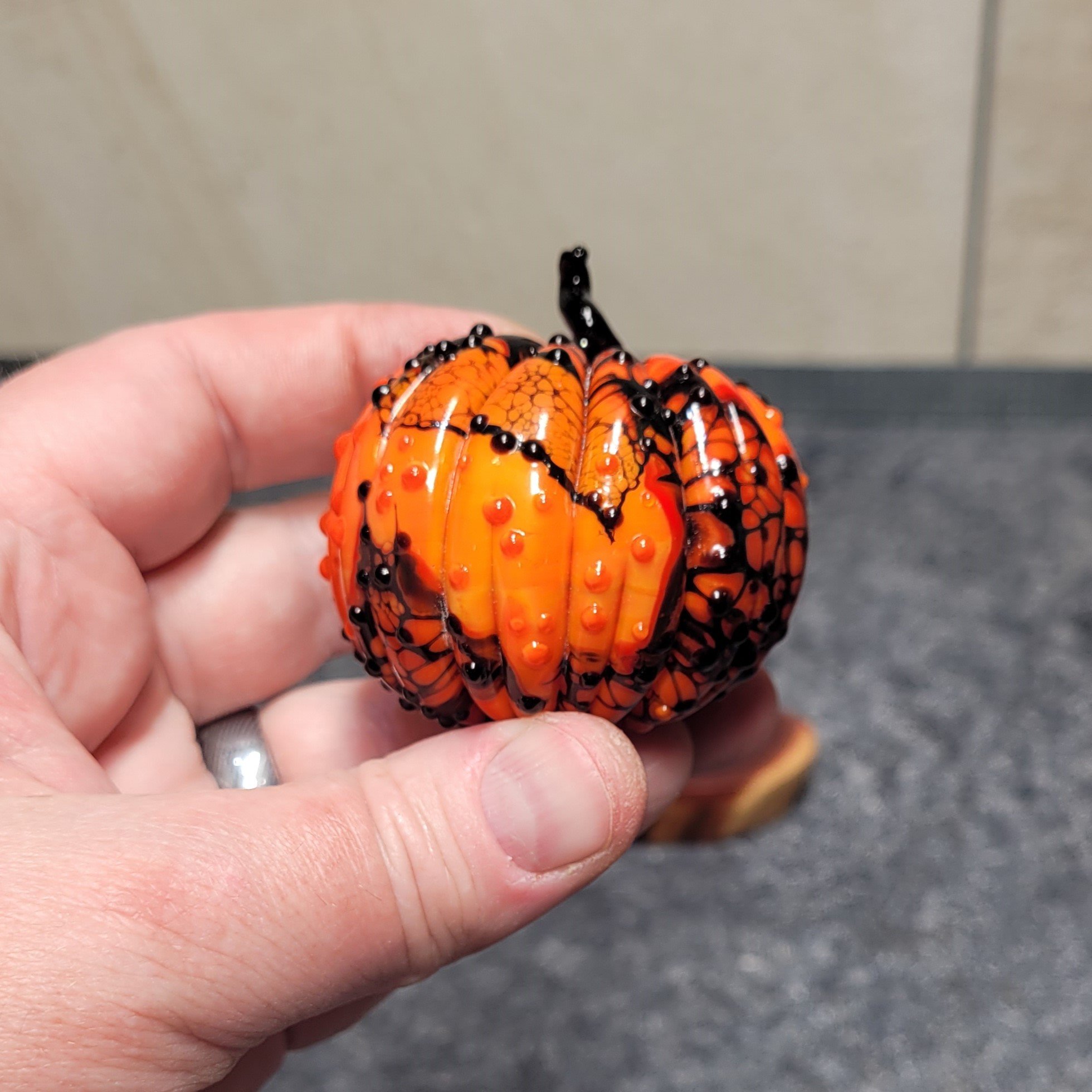 This is a new line of glass sculptures in my "Seasonal" series... this is little Halloween themed pumpkin. This will be an expansive series, so let me know if you are interested in a particular set of colors as a MTO (made to order) :)