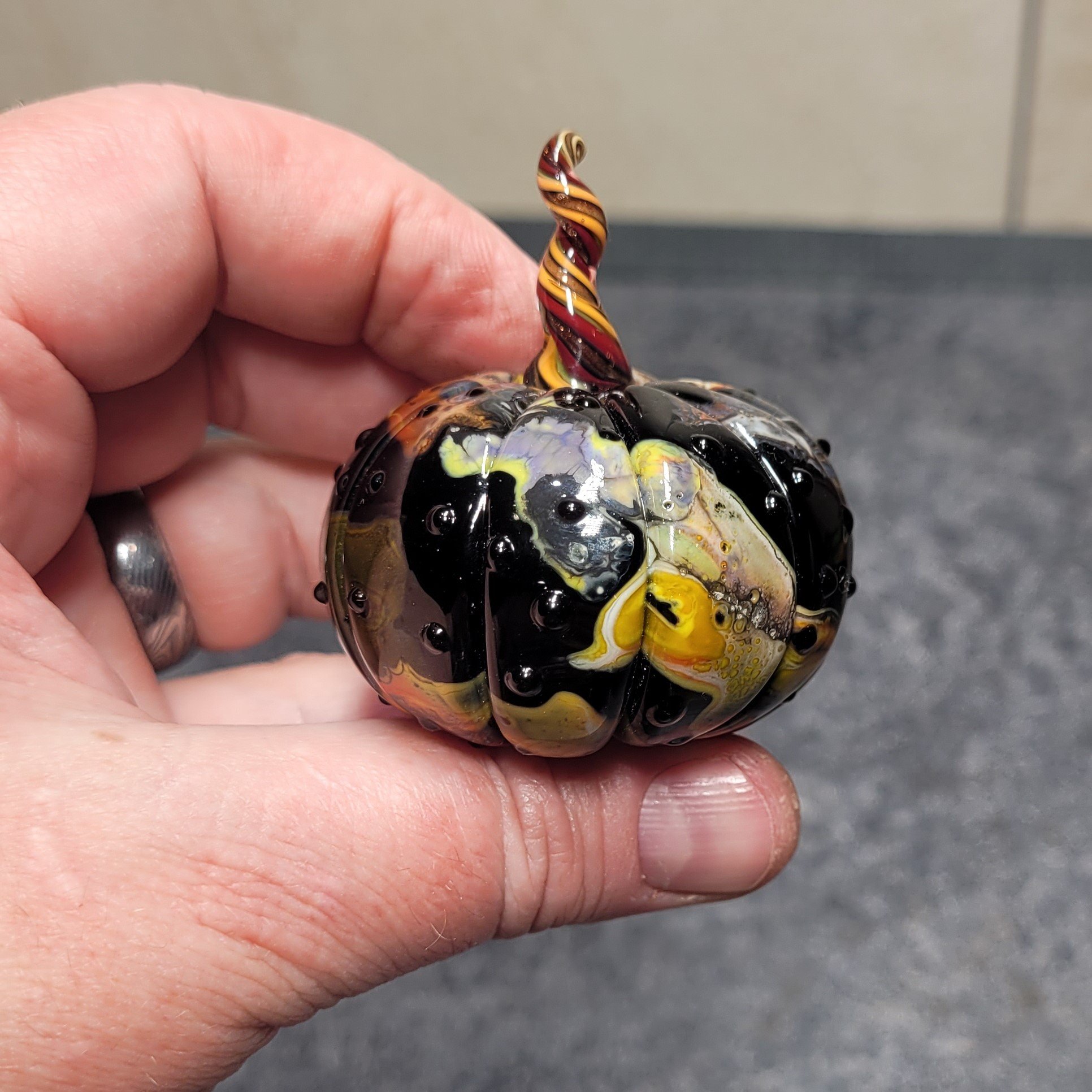 This is a new line of glass sculptures in my "Seasonal" series... this is little Halloween themed pumpkin. This will be an expansive series, so let me know if you are interested in a particular set of colors as a MTO (made to order) :)