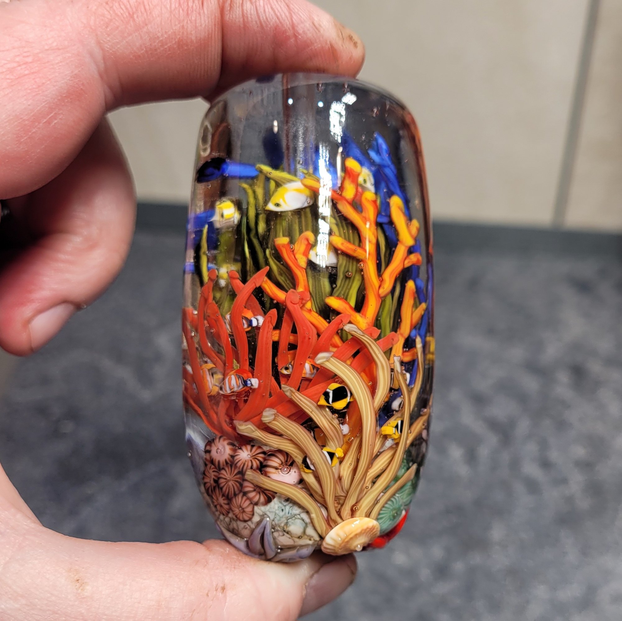 XXXL. Bright Tropical Coral Reef Aquarium - Flameworked Glass Sculpture Bead