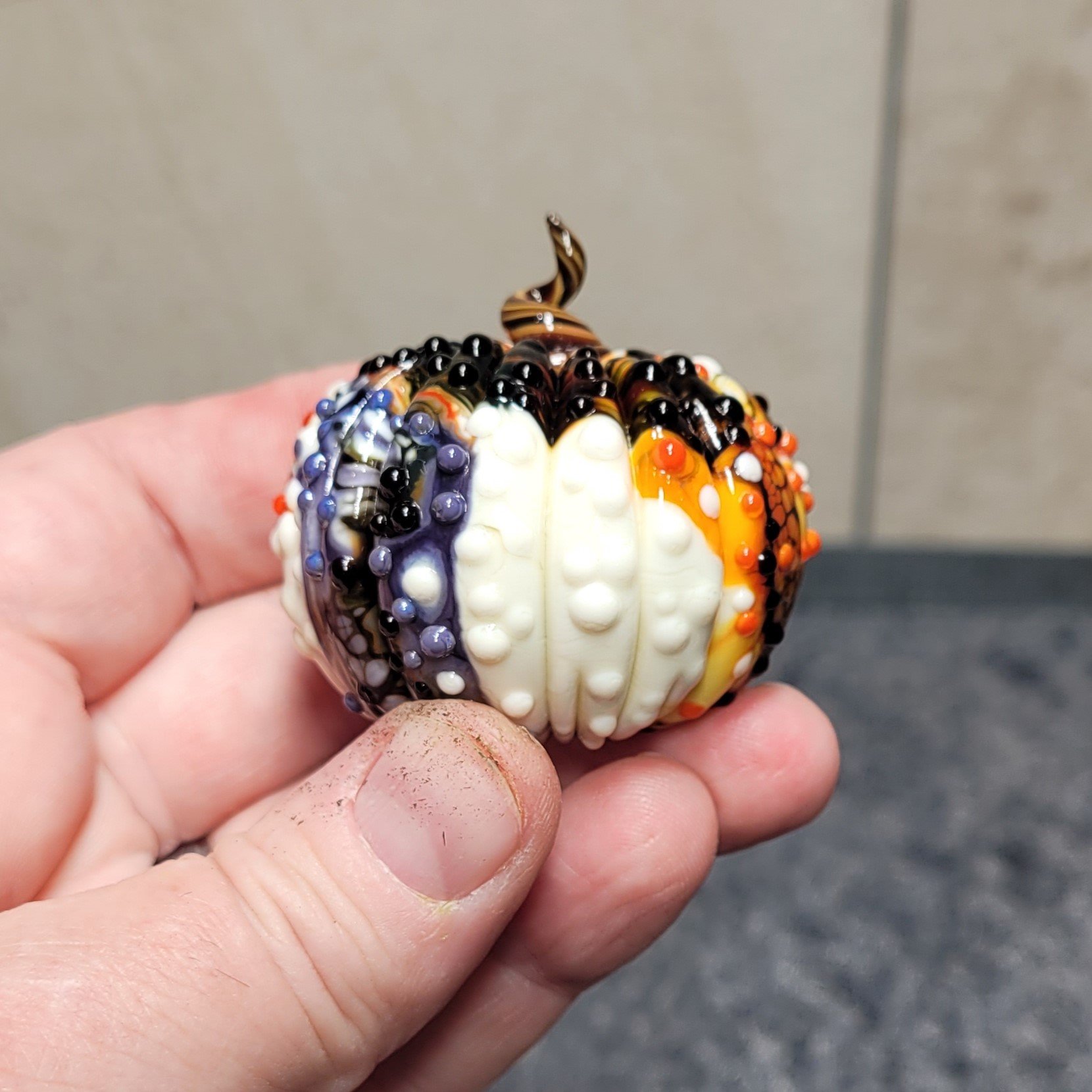 This is a new line of glass sculptures in my "Seasonal" series... this is little Halloween themed pumpkin. This will be an expansive series, so let me know if you are interested in a particular set of colors as a MTO (made to order) :)