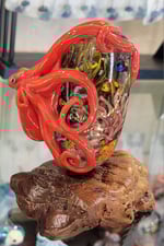 1 XXXXL. Dk Coral Octopus Aquarium sculpture with 2 wooden display bases @ $450