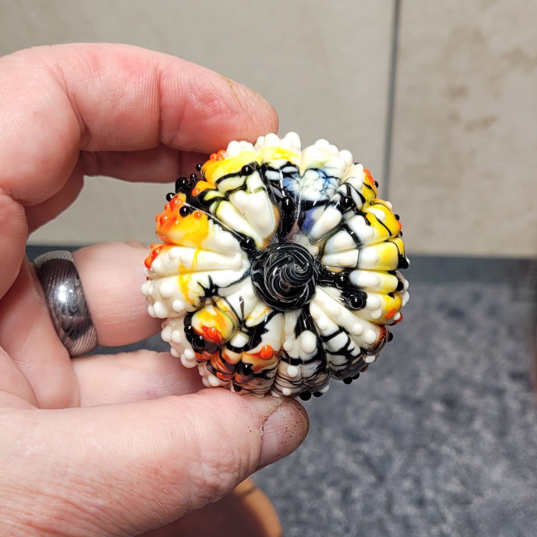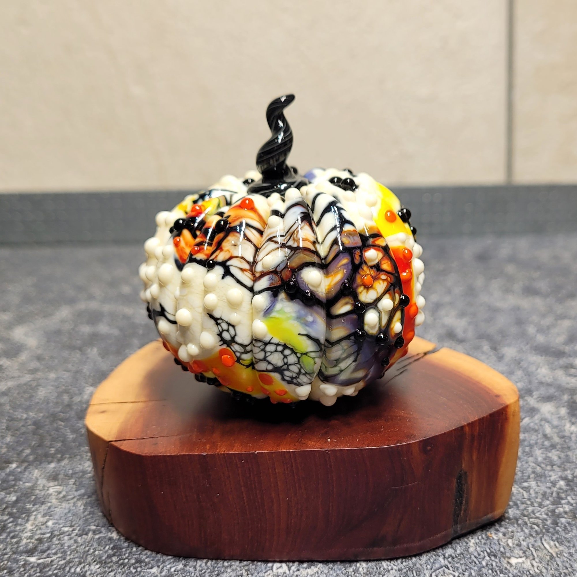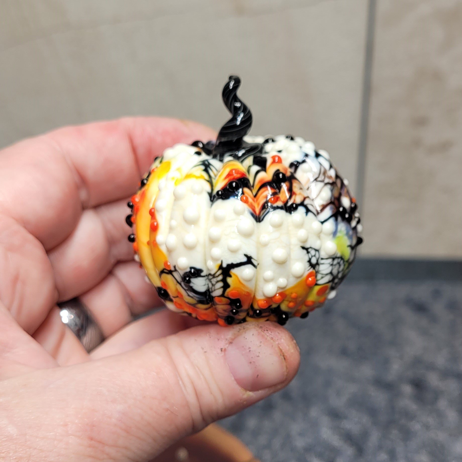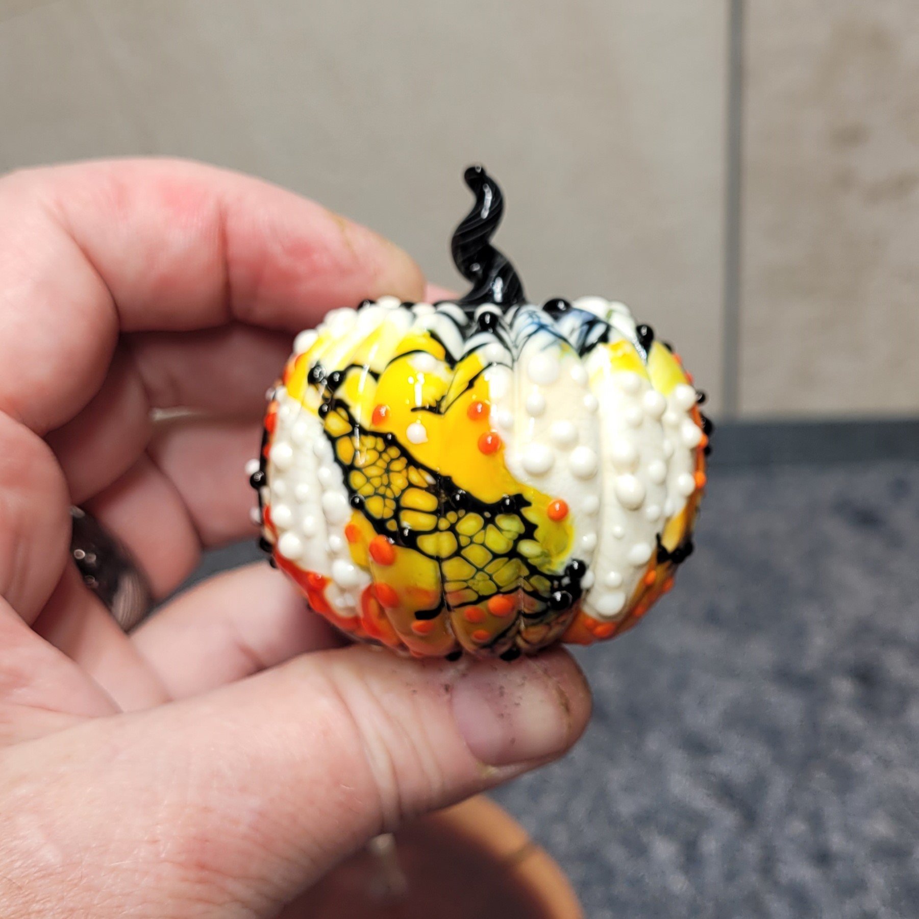 XL. Festive Cobweb Pumpkin - Flamework glass sculpture