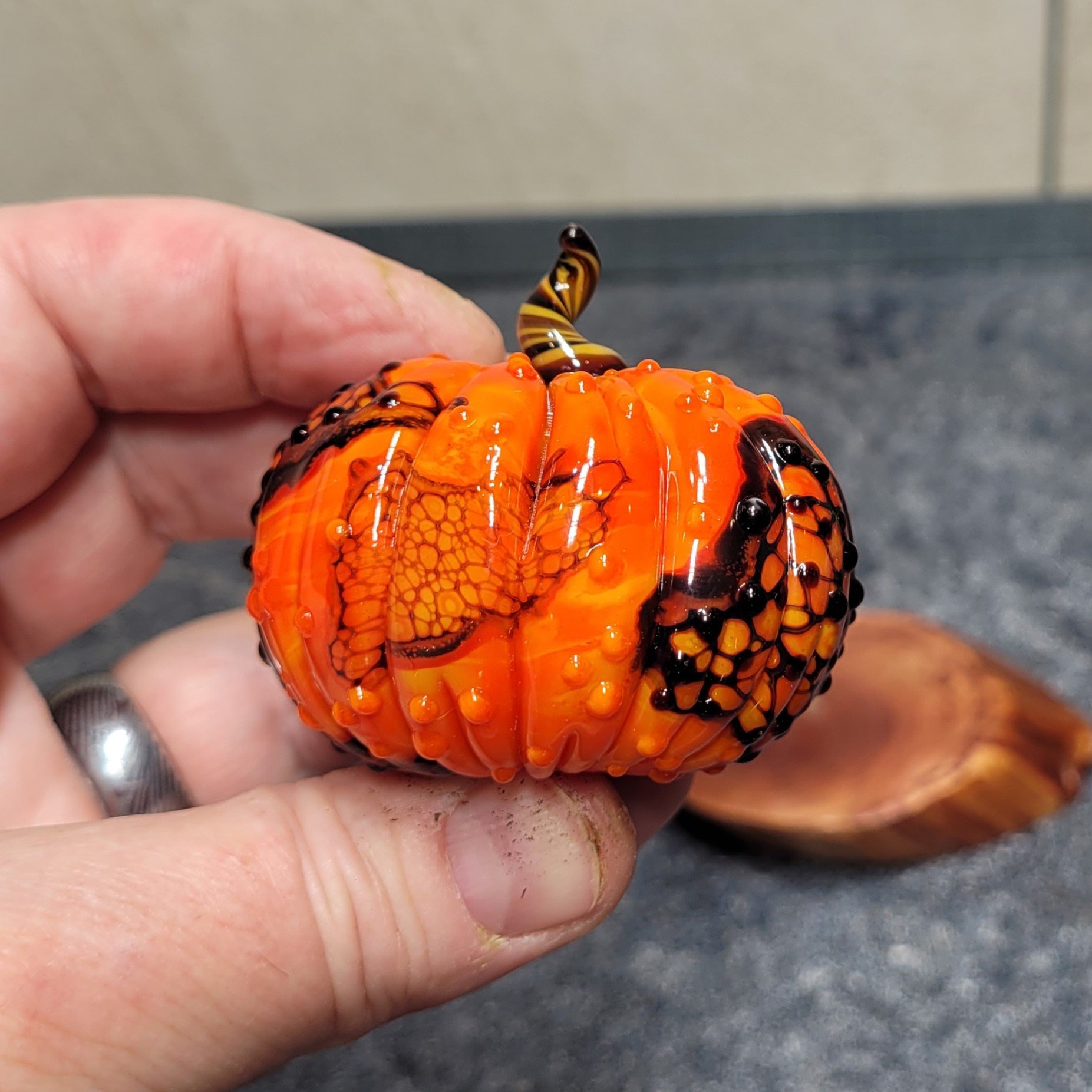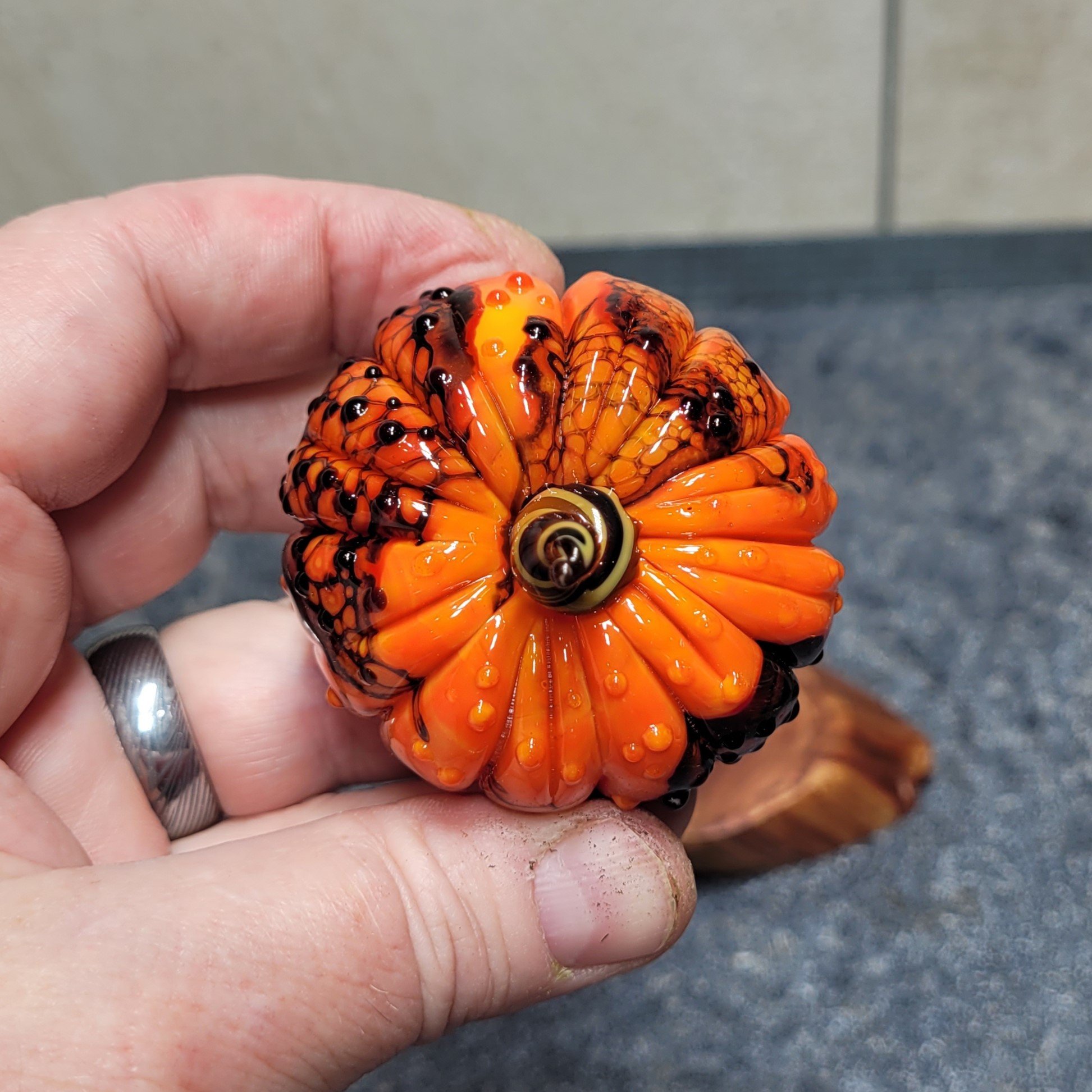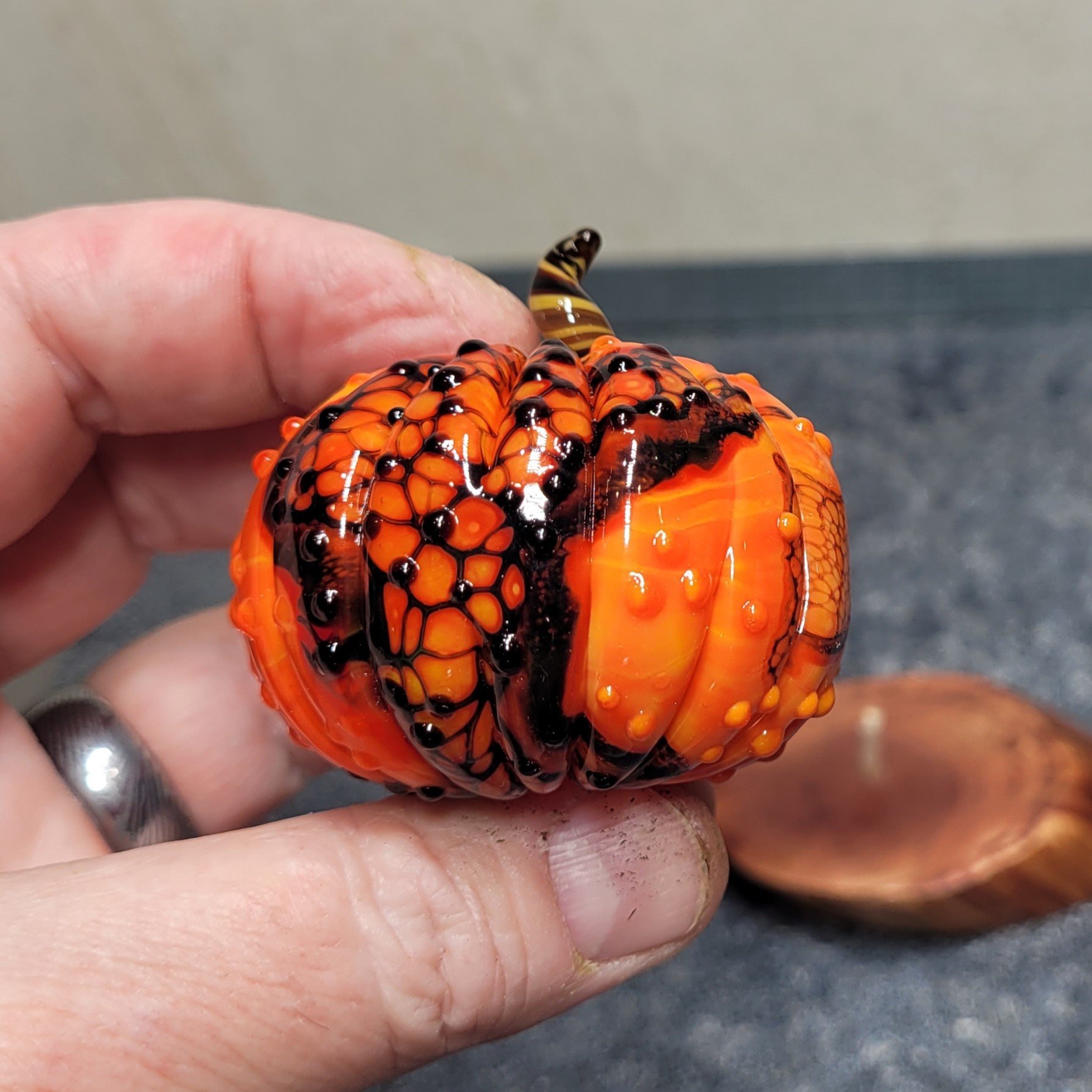 This is a new line of glass sculptures in my "Seasonal" series... this is little Halloween themed pumpkin. This will be an expansive series, so let me know if you are interested in a particular set of colors as a MTO (made to order) :)
