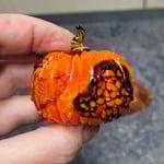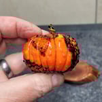 XL. Orange & Black Cobweb Pumpkin - Flamework glass sculpture