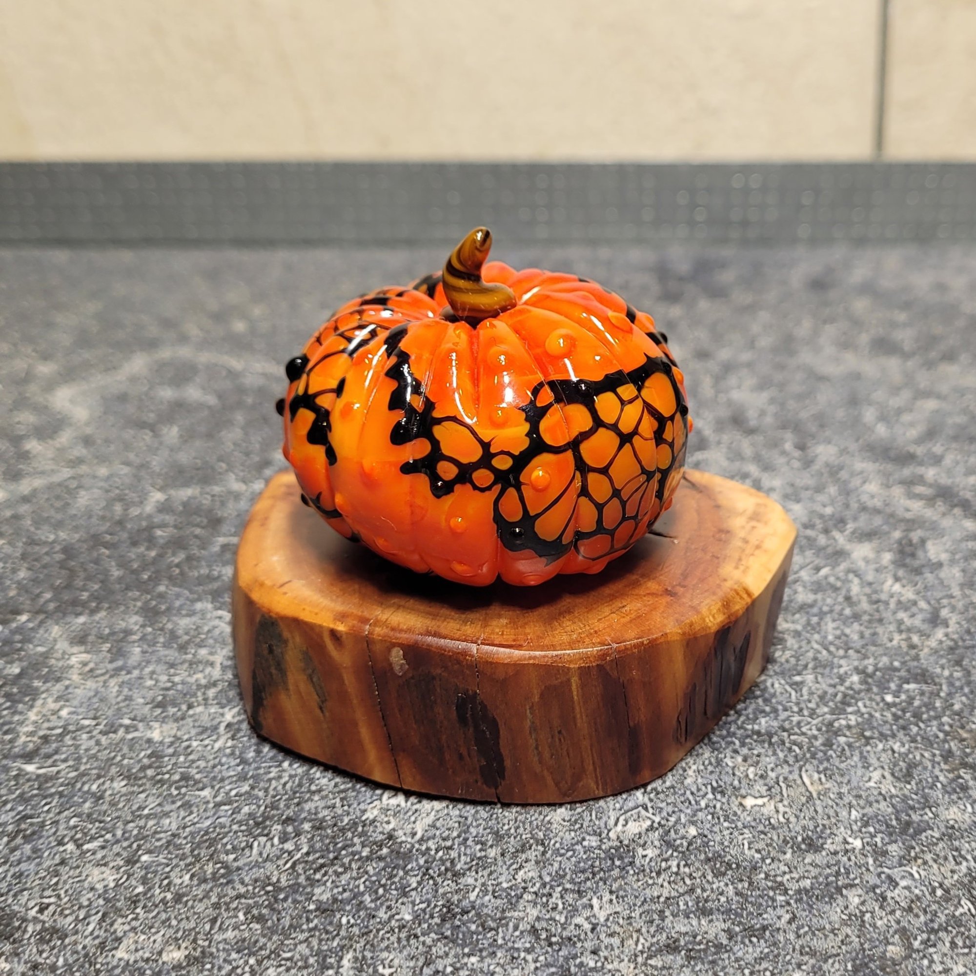 LG. Orange & Black Pumpkin - Flamework glass sculpture