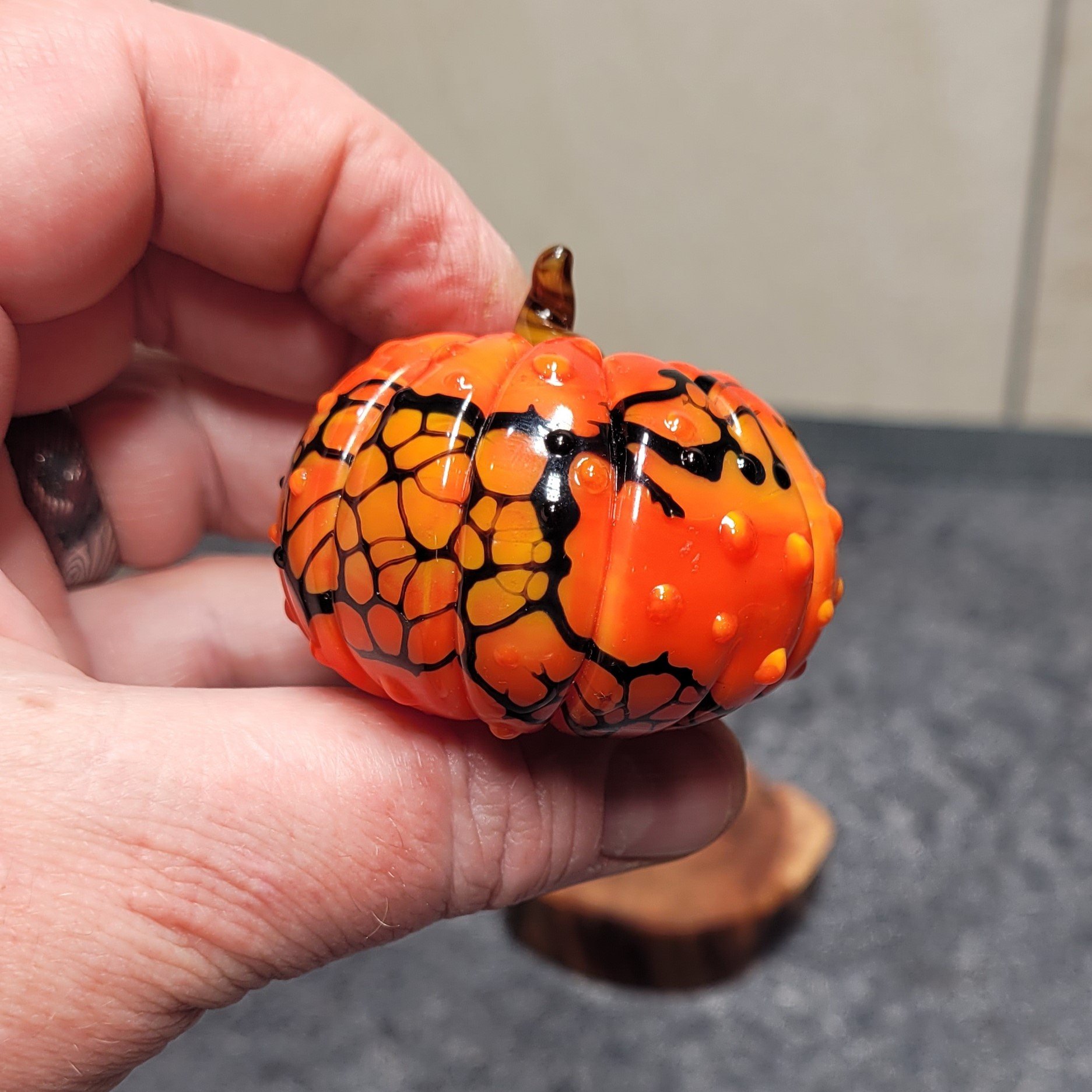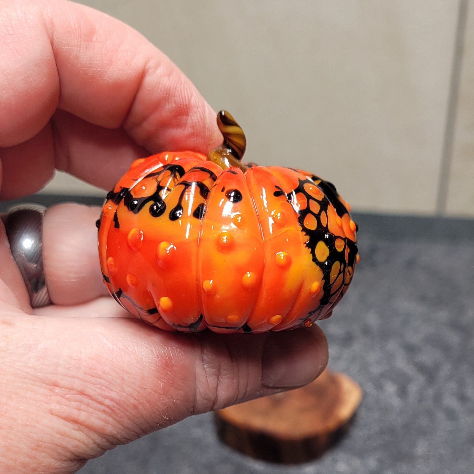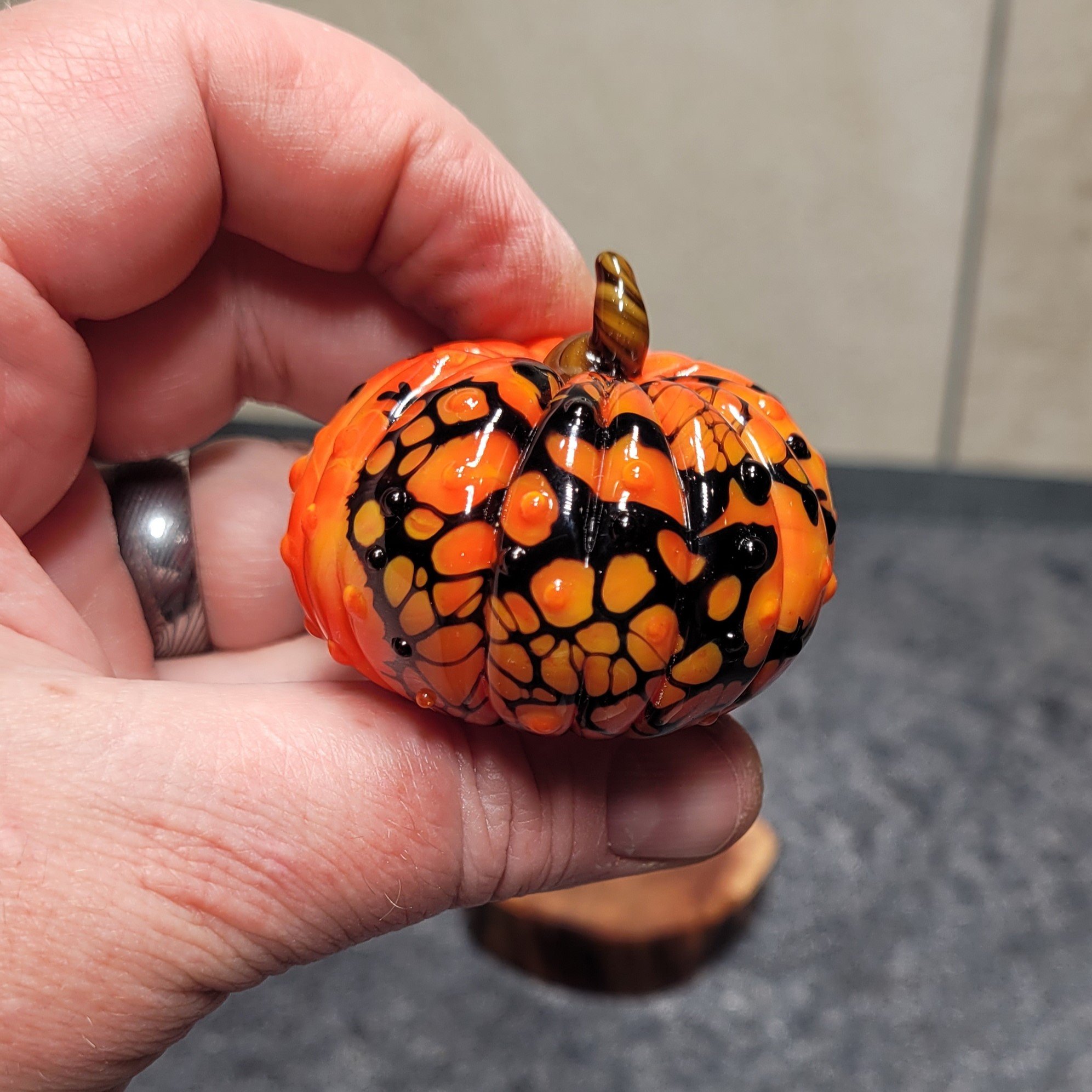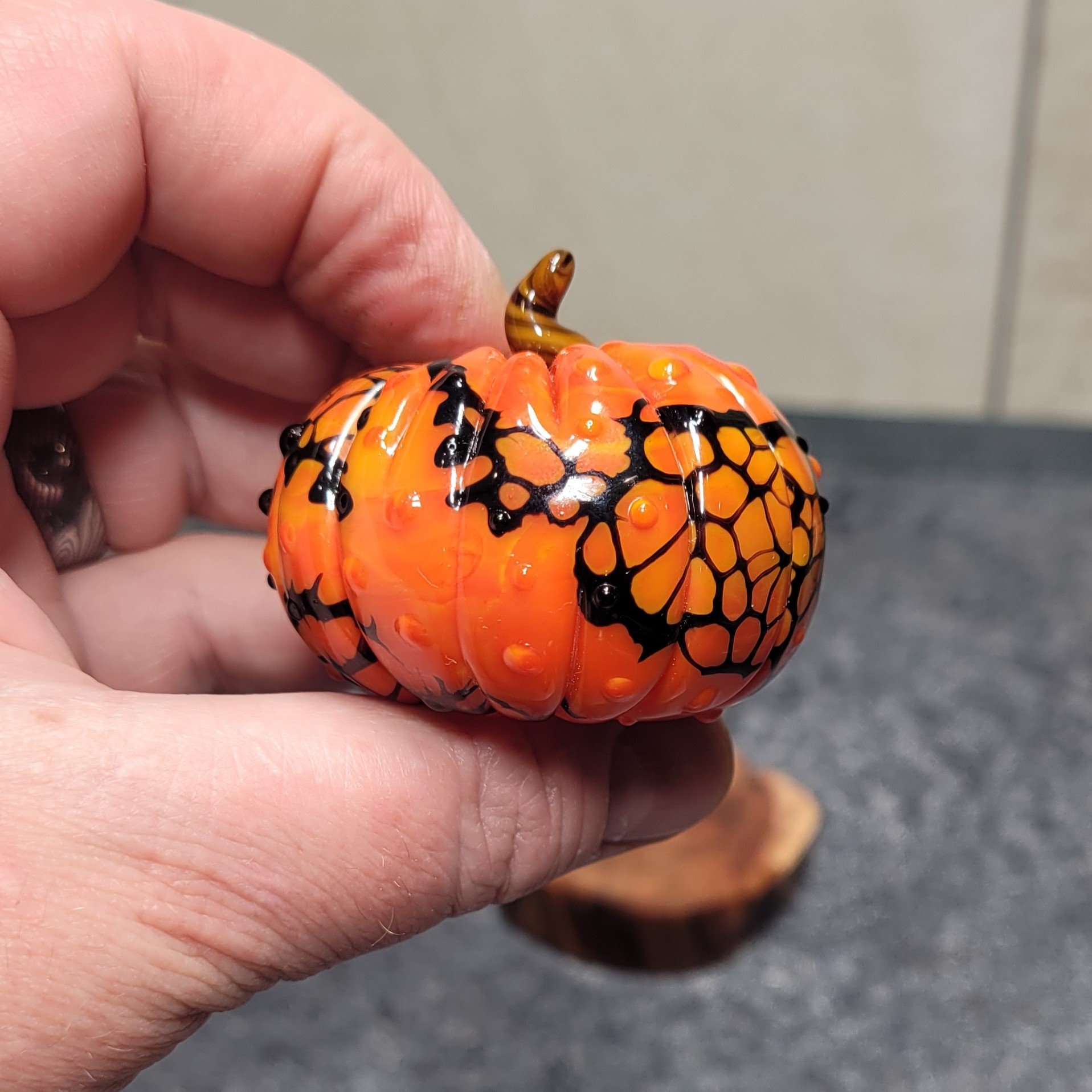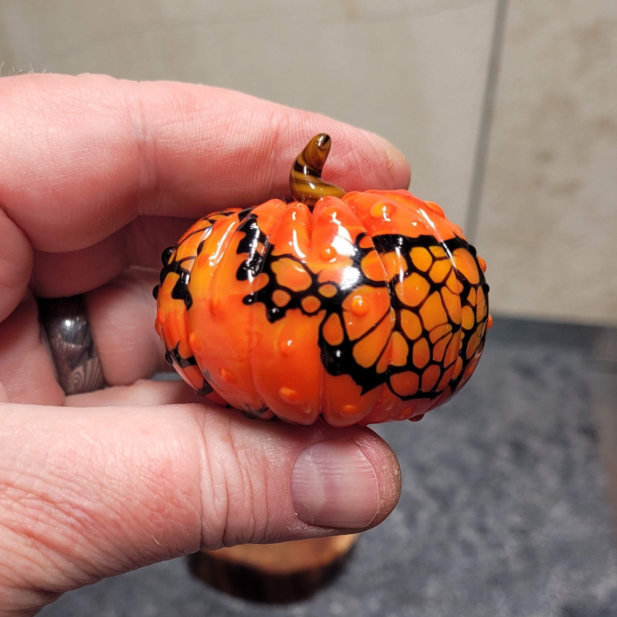 This is a new line of glass sculptures in my "Seasonal" series... this is little Halloween themed pumpkin. This will be an expansive series, so let me know if you are interested in a particular set of colors as a MTO (made to order) :)