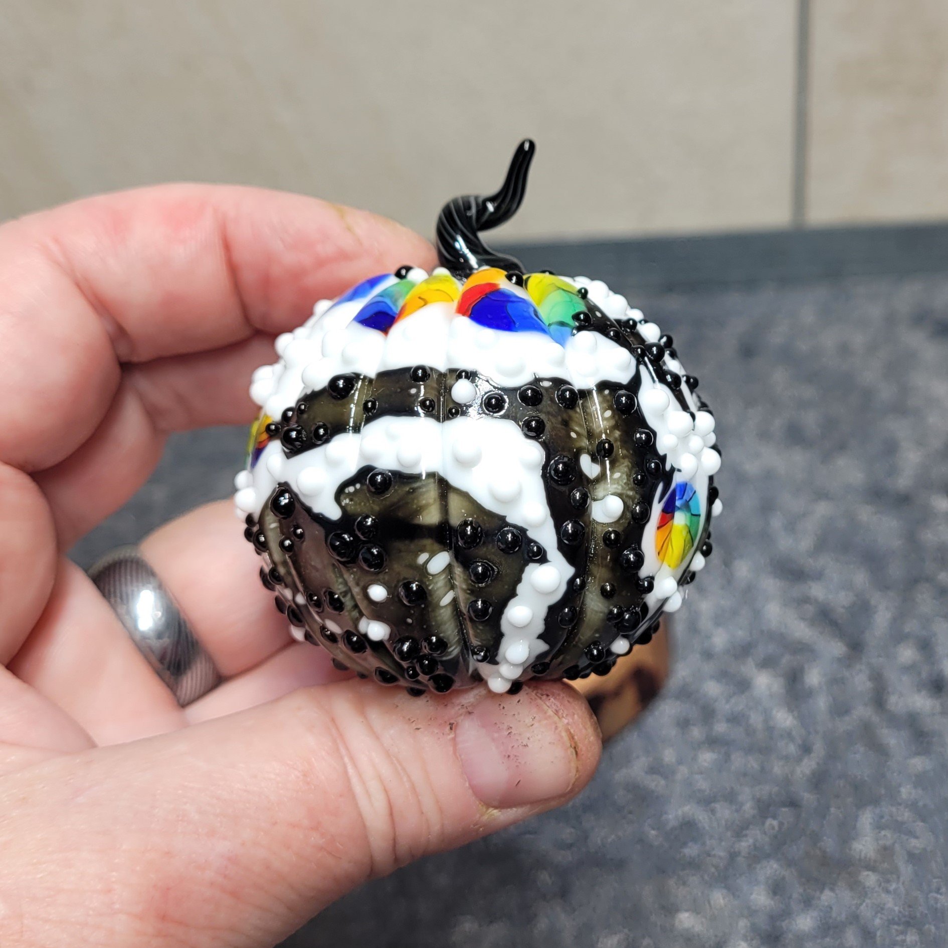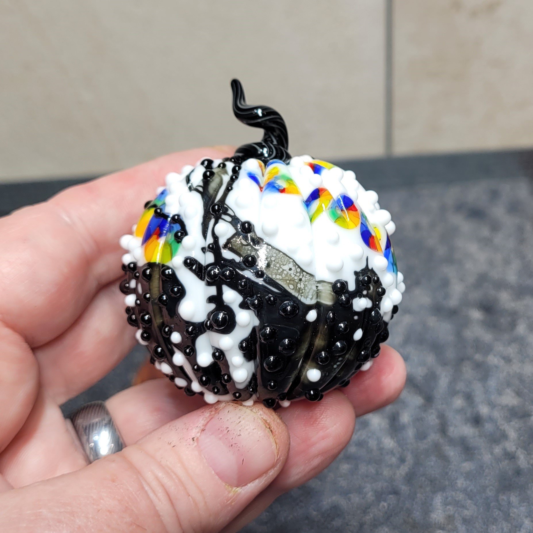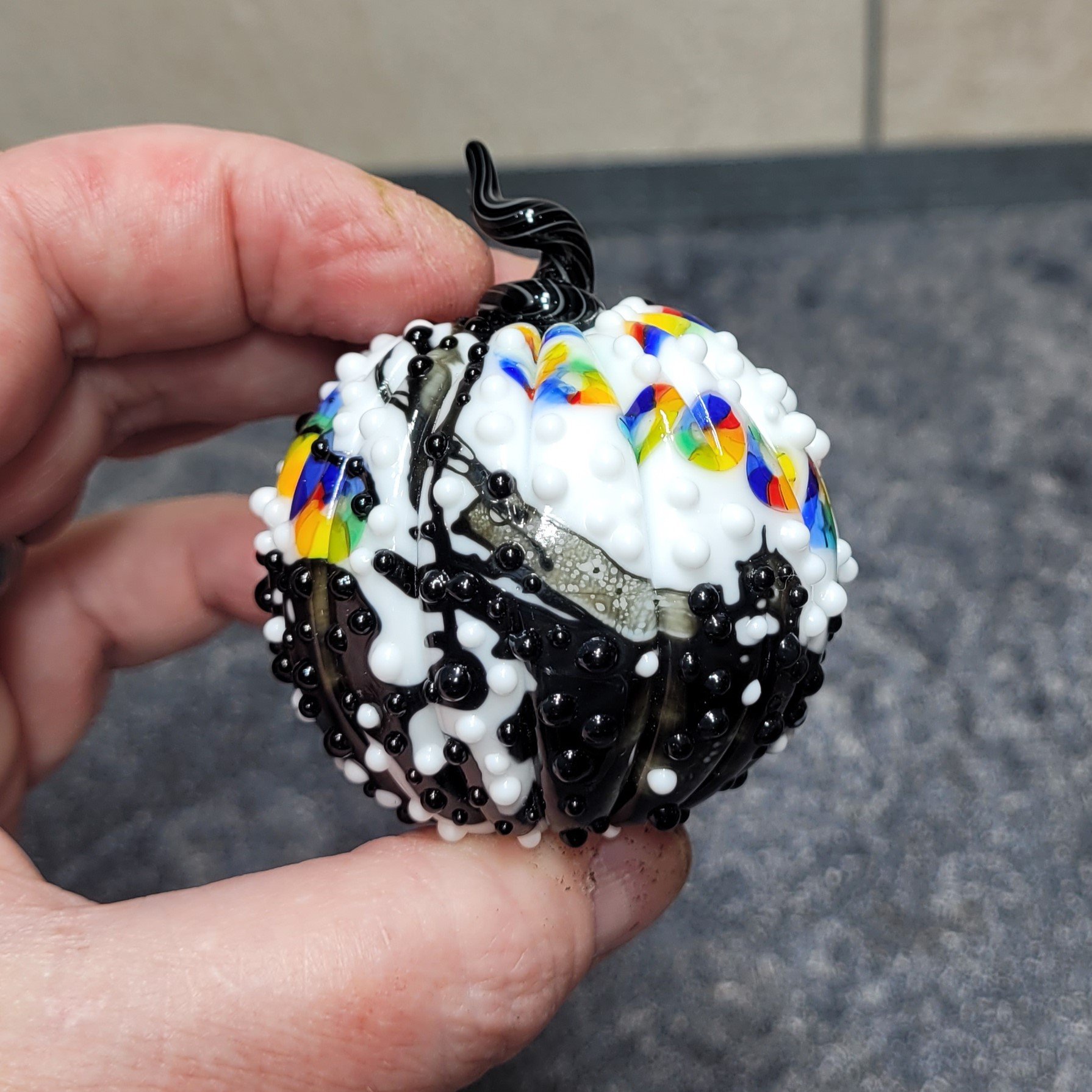 XL. Rainbow, Black & White Pumpkin - Flamework glass sculpture