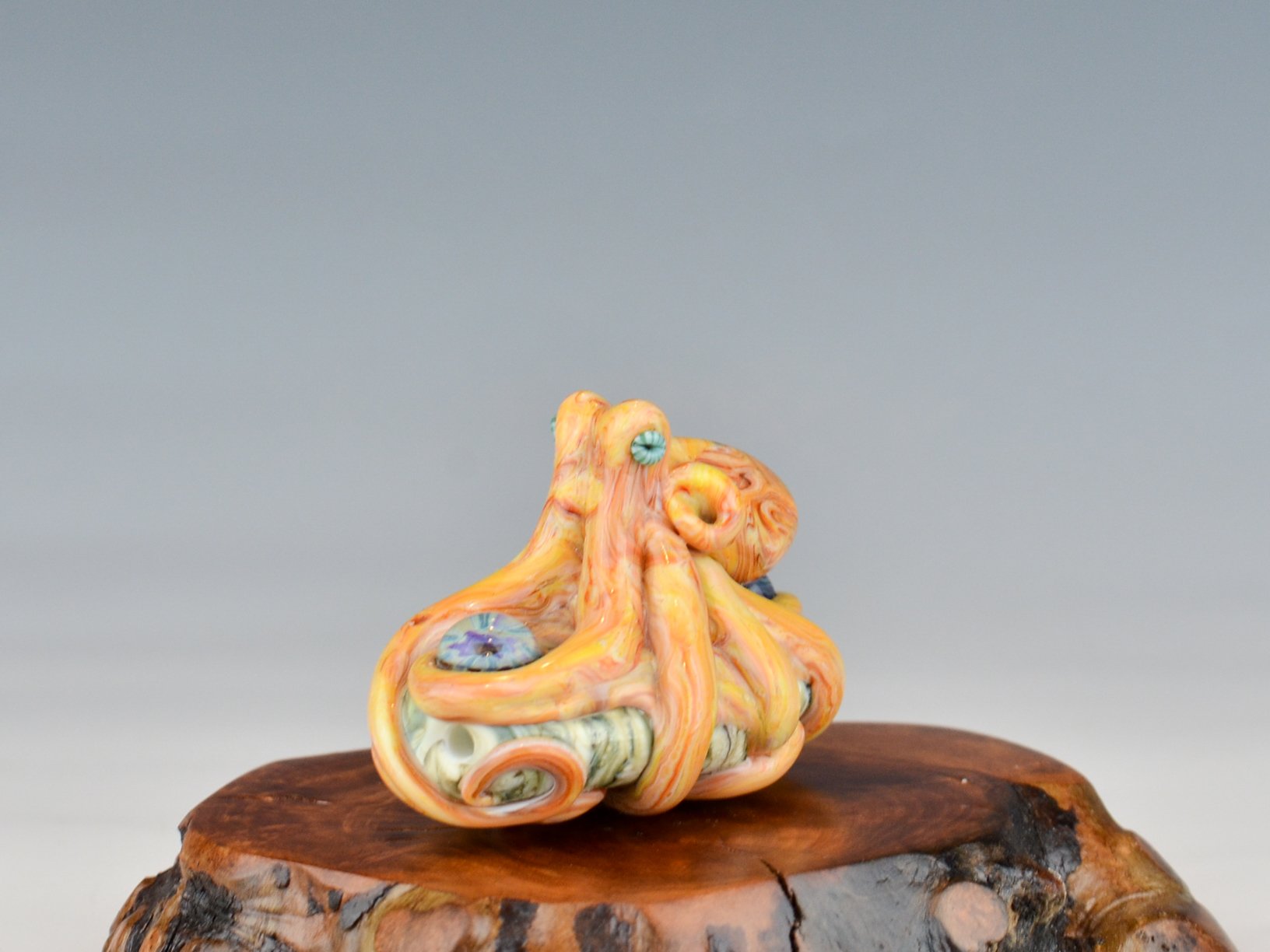 LG. Streaky Little Coral Yellow Orange Octopus - Flameworked Glass Sculpture Bead