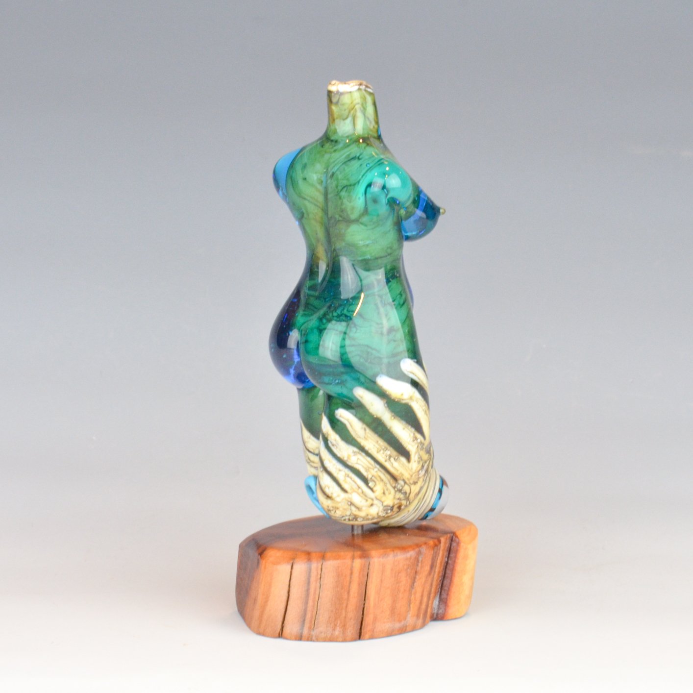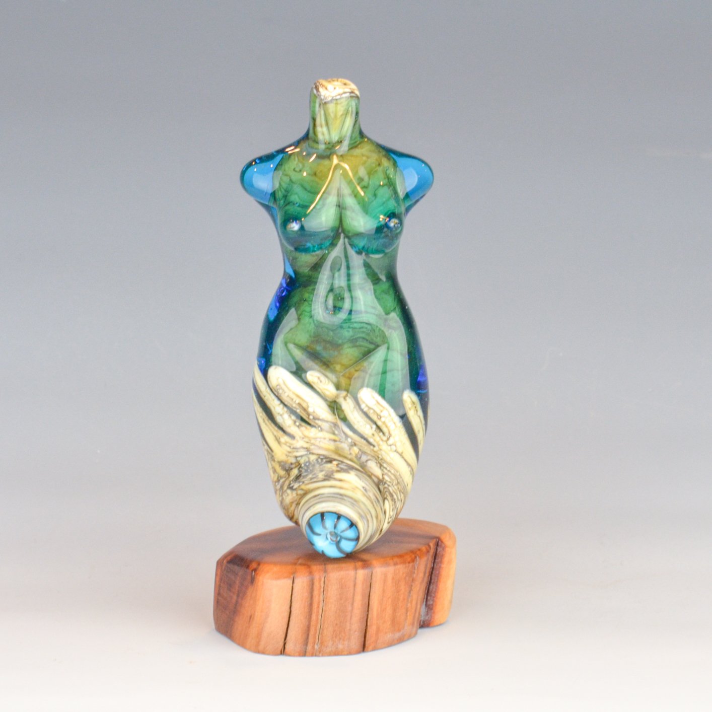This little lady is an athletic and curvaceous female "goddess" glass sculpture/pendant bead and is one of the most recent editions added to my "Seaside Goddess" series. She is made of a few different colors of glass... the most predominant being a transparent deep blue green :)