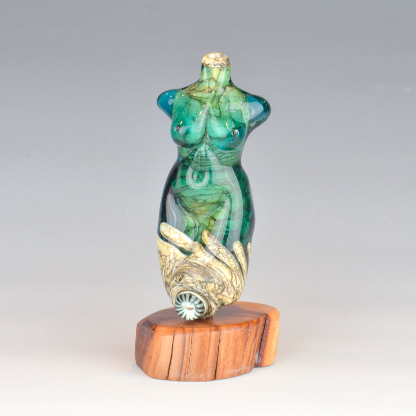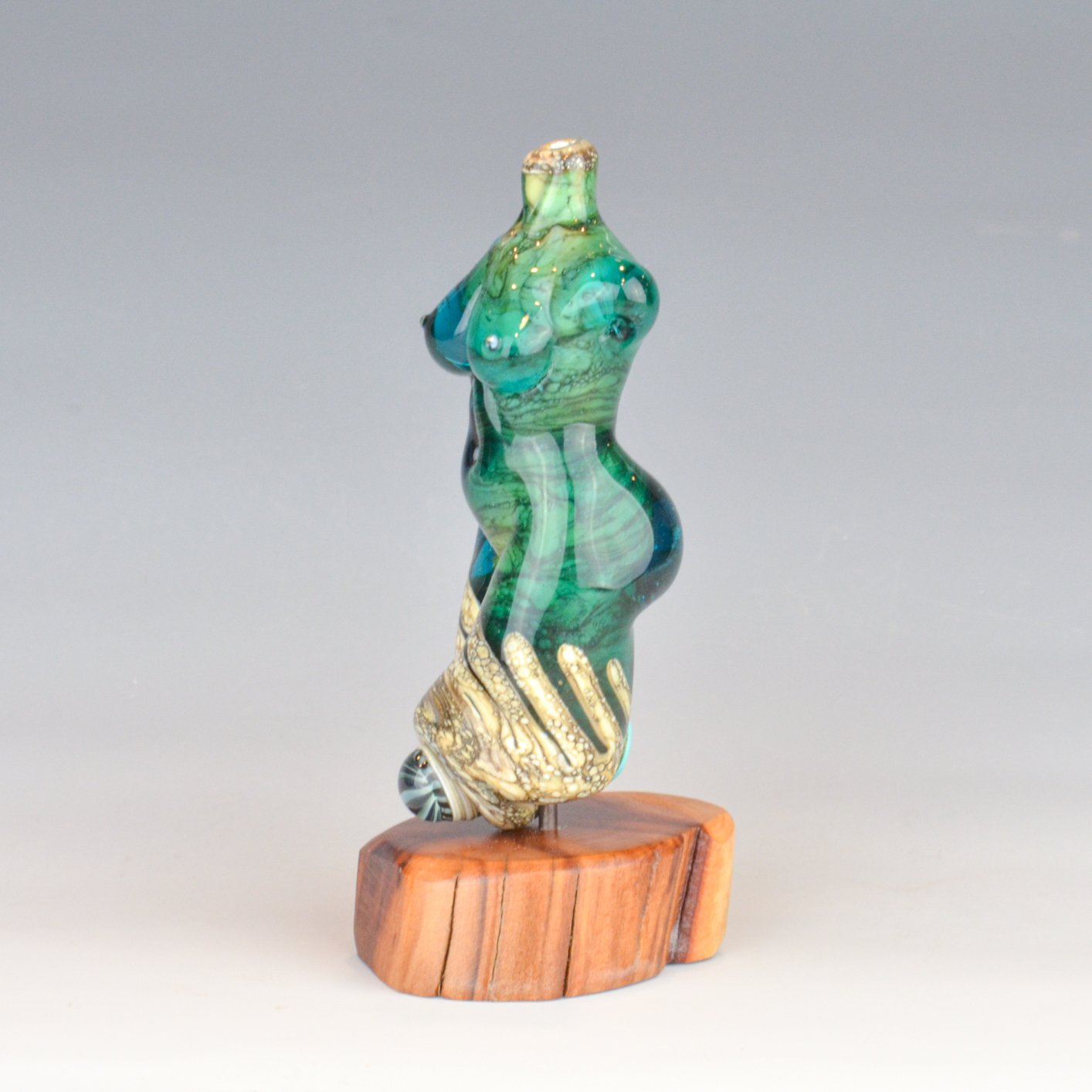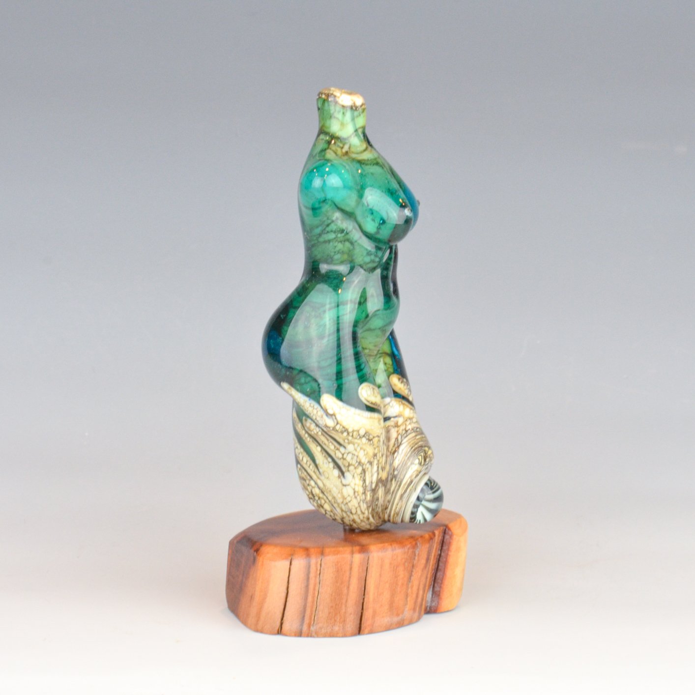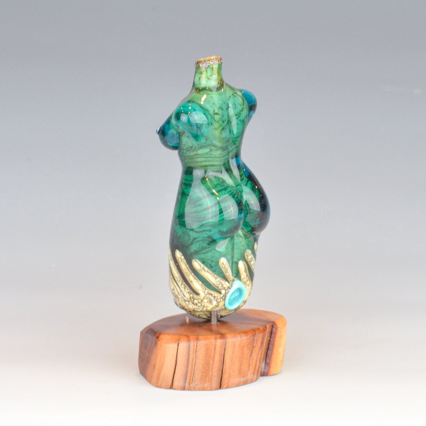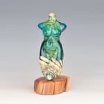 This little lady is an athletic and curvaceous female "goddess" glass sculpture/pendant bead and is one of the most recent editions added to my "Seaside Goddess" series. She is made of a few different colors of glass... the most predominant being a transparent blue green :)